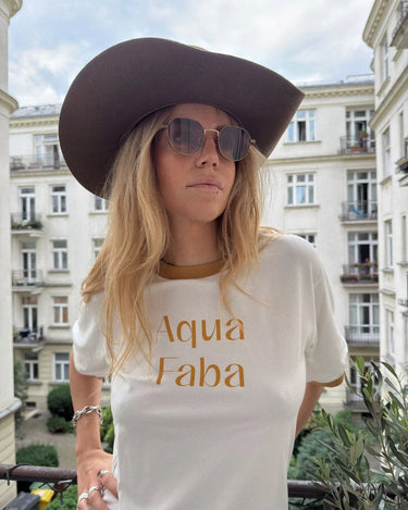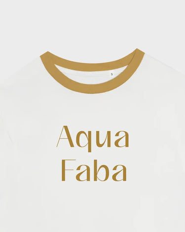 Just like aquafaba adds thickness and richness to everything from cakes to mayo – our Aqua Faba vegan t-shirt brings body (and soul) to your wardrobe. The creamy white base with warm mustard trims and a playful slogan makes this a standout piece in your wordrobe.
