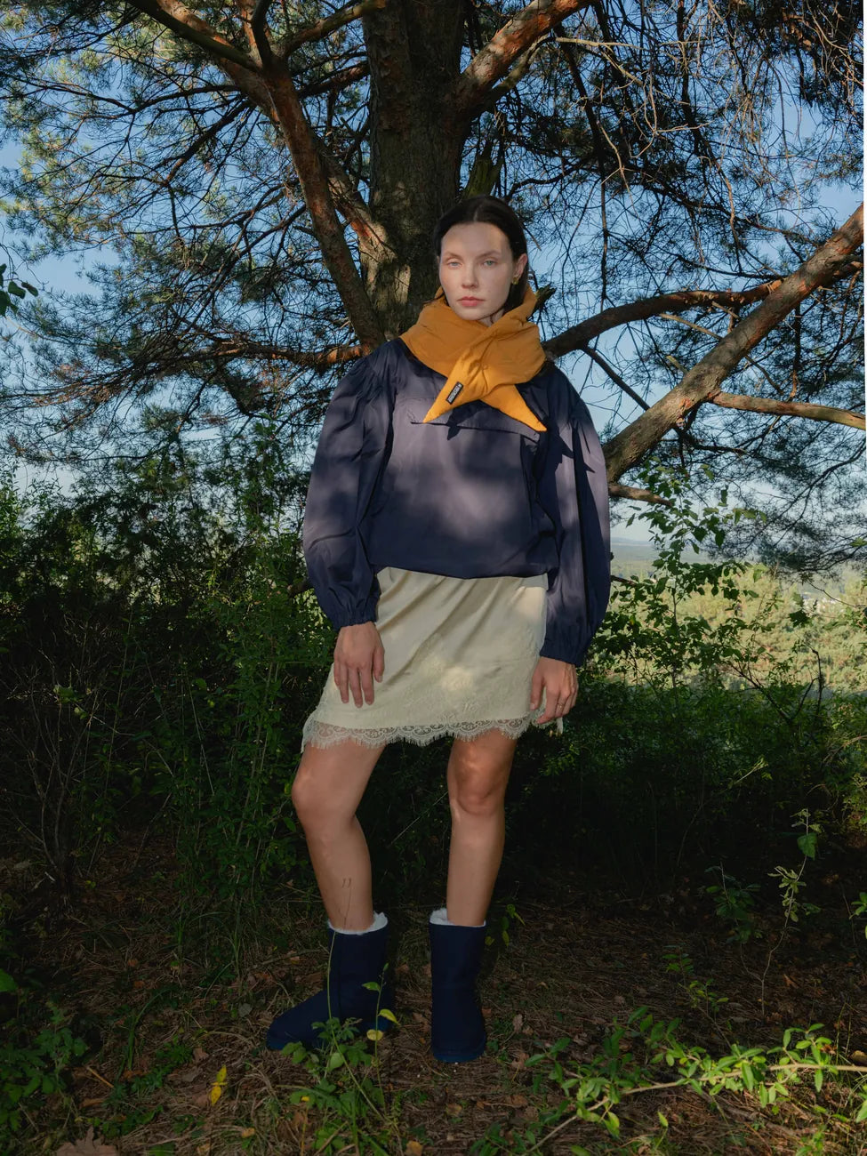 Designed with cruelty-free insulation and wrapped in light blue softness, this vegan winter scarf offers comfort and care in one. The under-chin strap allows you to adapt it to your look and your warmth needs. For a thoughtful winter layer that stands out without shouting, this sky blue vegan scarf is everything.